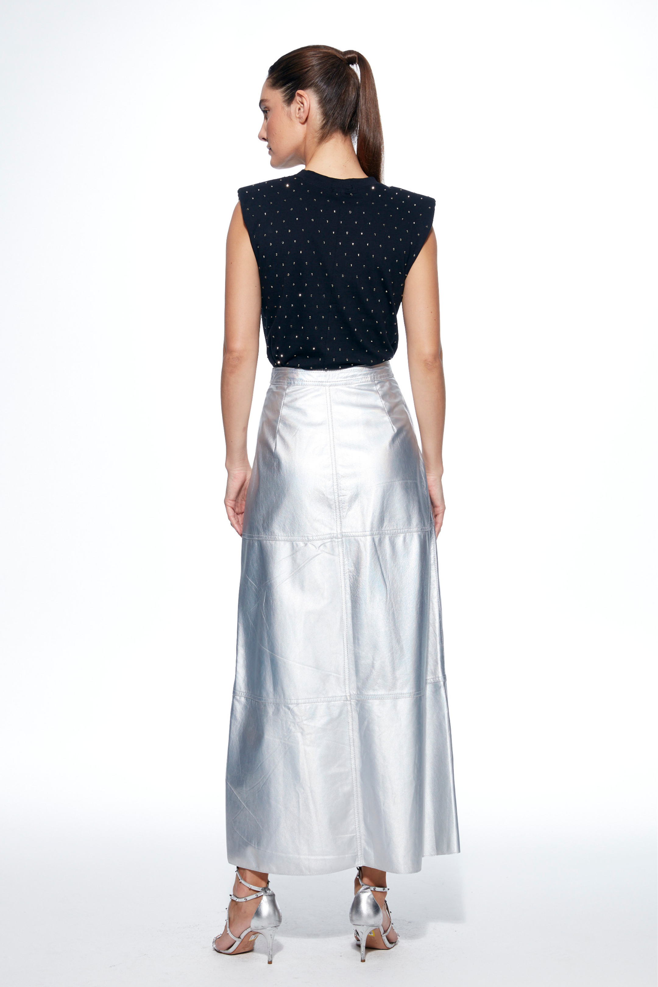 A Saia Couro Classic Vera Metal MLK da Mameluka é a peça perfeita para quem busca sofisticação e versatilidade em um design marcante. Confeccionada em 100% couro de alta qualidade, ela apresenta um acabamento metalizado que adiciona brilho e elegância às suas produções.