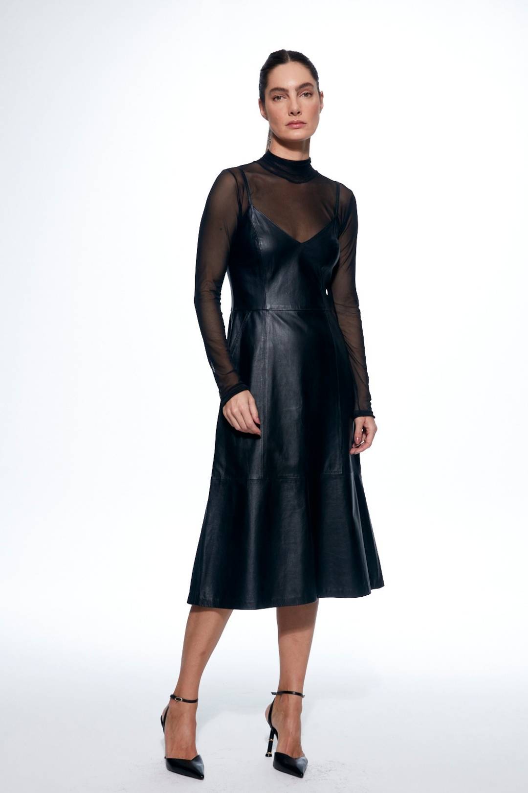 O Vestido Couro Classic Midi MLK da Mameluka é o mais vendido da marca, combinando sofisticação e funcionalidade. Com decote em V, modelagem midi evasê e acinturada, a peça destaca-se por valorizar a silhueta e garantir conforto. Os bolsos faca agregam praticidade ao design elegante. Disponível nos tamanhos do PP ao G4 e também sob encomenda, é a escolha ideal para mulheres que buscam estilo atemporal para diversas ocasiões.